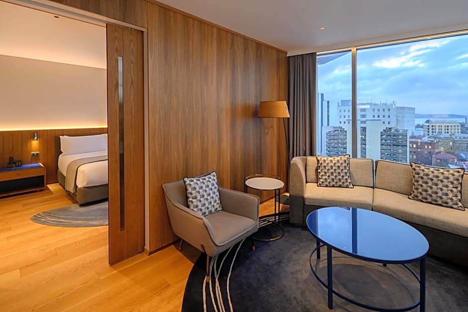 This suite's special feature is the hot tub. Providing free toiletries and bathrobes, this suite includes a private bathroom with a walk-in shower, a bath and a hairdryer. The spacious air-conditioned suite provides a flat-screen TV with streaming services, soundproof walls, a mini-bar, a tea and coffee maker as well as city views. The unit offers 1 bed.